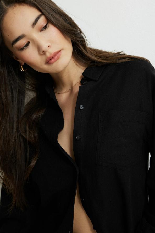 This shirt is made from an airy and lightweight linen, designed for an oversized fit. Style it with pants for an in-office look. Features Spread collar Button closure Patch pocket Buttoned cuffs Box pleat at back yoke Size & Fit Oversized fit Model is wearing size XXS/XS Materials & Care 52% linen, 48% viscose Machine wash, cold Imported